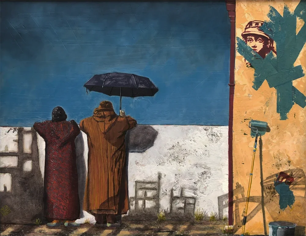 In this video we talk about process. We tend to do a lot of reserch to our paintings. We do want to say something about the world that we both experience. If you check our Projects page you will learn more about the background of some of our work.
