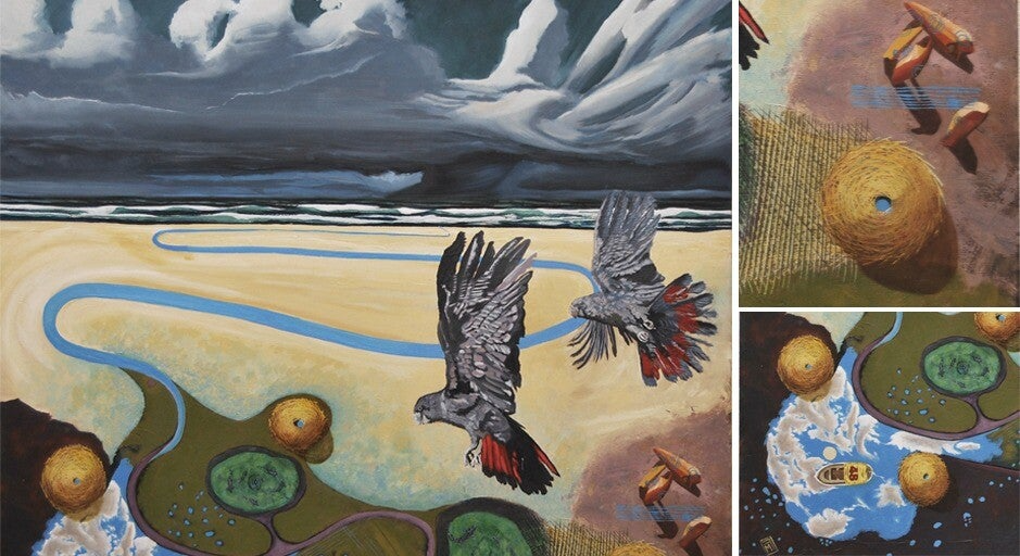 Is a large-scale painting constructed in a synthetic Cubist form, functioning as a visual autobiography. The work draws together fragments of memory, experience, and emotion, spanning from early childhood through to the present. Rather than presenting a linear story, the painting uses symbol and structure to suggest how memory operates—layered, fractured, and continually reshaped over time.